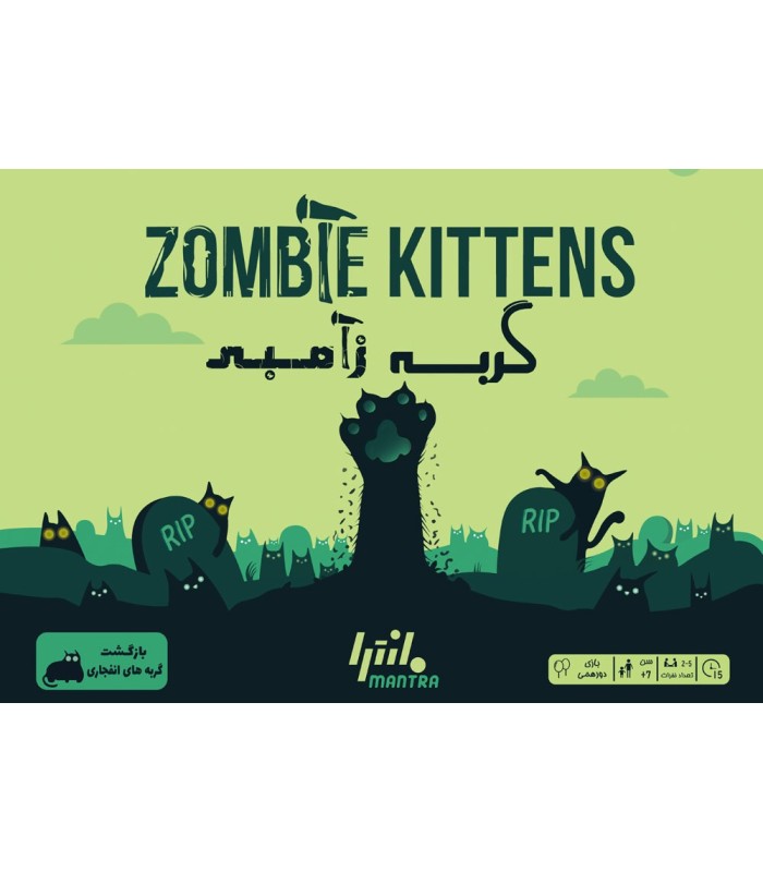 گربه زامبي يک بازي کاملا مستقل و جديد است که اخيرا منتشر شده ، در بازي گربه زامبي فقط بايد سعي کنيد که منفجر نشويد و تا پايان بازي زنده بمانيد . اگر منفجر نشويد، مي بريد ولي نکته مهم اينجا است که اگر منفجر شويد باز هم ممکنه ببريد چون بعد از منفجر شدن ميتونيد به عنوان زامبي قويتر از قبل به بازي برگرديد ولي به شرط اينکه يکي از بازيکنان مرده ي ديگر را نيز با خودتان زنده کنيد و به بازي برگردانيد . در بازي گربه زامبي ابتدا کارت هاي گربه انفجاري و کارت هاي گربه زامبي ، که مي تواند شما را به همراه يک بازيکن مرده ديگر زنده کند ، را از بازي خارج مي کنيد. سپس تمام کارت ها را بر مي زنيد و به هر بازيکن هفت کارت به اضافه يک کارت گربه زامبي مي دهيد. کارت هاي گربه انفجاري را به تعداد يکي کمتر از بازيکنان، داخل دسته کارت ها گذاشته و بر مي زنيد که تشکيل دک کارت ها را مي دهد. دک کارت ها را در ميان ميز بازي گذاشته و هم اکنون بازي آغاز مي شود. هر کسي در نوبت خودش هر تعداد کارت که مي خواهد مي تواند از دستش بازي کند ولي نکته مهم اين است که در پايان نوبت، حتما بايد يک کارت از دک کارت هاي بازي بکشد. ممکن است اين کارت، يک کارت گربه انفجاري باشد و شايد هم خوش شانس باشيد و نباشد. ولي نگران نباشيد، حتي اگر گربه انفجاري باشد، شما هنوز يک کارت گربه زامبي داريد اگر هم نداشتيد پس از انفجار به عنوان زامبي داخل بازي خواهيد بود (فقط کارت هاي مخصوص زامبي هارا بازي ميکنيد و کارت هم نميکشيد) تا اين که اگر خوش شانس باشيد، يک نفر شما را با کارت گربه زامبي اش به زندگي بازگرداند تا بتوانيد شانس خود را براي زنده ماندن و برنده بازي شدن امتحان کنيد . در اين بازي آخرين بازيکن زنده برنده بازي ميباشد.